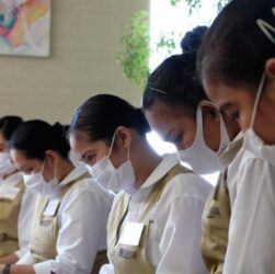 Des travailleuses domestiques philippines recrutées par Kurashinity pour travailler au Japon participent à une séance d’orientation en juin 2020. (© …