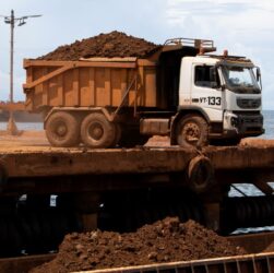 Image: Le 22 mai 2025, un camion rempli de minerai de nickel s’apprête à le décharger dans une péniche, sur …