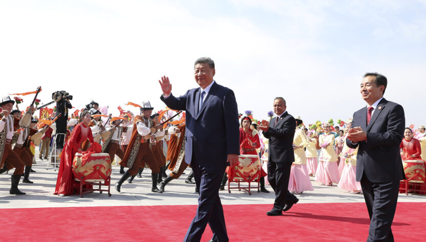 Le président Xi Jinping salue la foule venue l’accueillir le 23 septembre 2025 à son arrivée à Urumqi, dans la région autonome ouïgoure du Xinjiang, pour assister aux événements commémorant le 70e anniversaire de la fondation de la région autonome (© XINHUA)