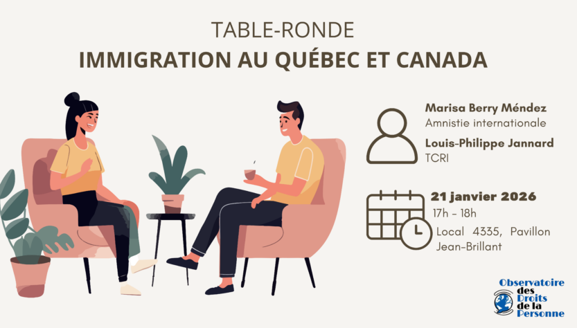 Rejoignez-nous le mercredi 21 janvier à 17h pour une table ronde autour des enjeux d’immigrations au Québec et Canada !