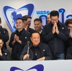 Le premier ministre thaïlandais et chef du parti Bhumjaithai, Anutin Charnvirakul, s’exprime lors d’une conférence de presse à Bangkok après …